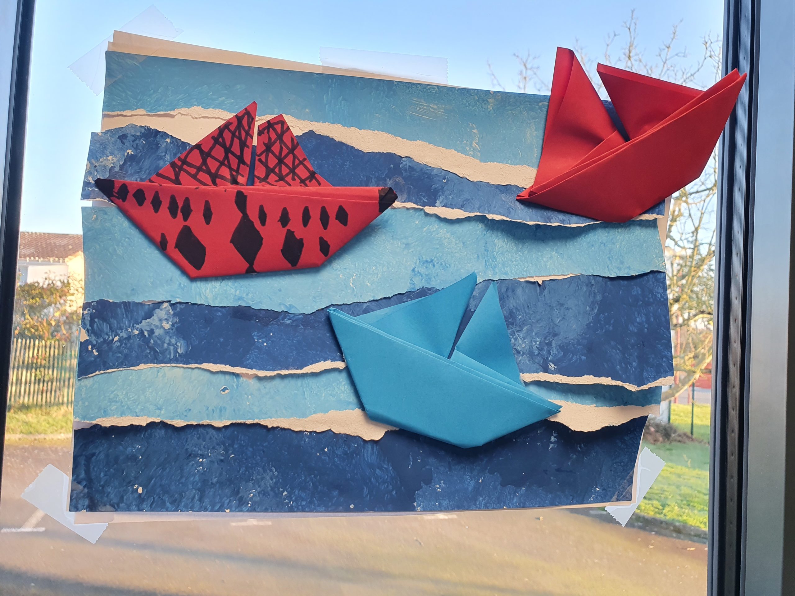 Les élèves ont également fabriqué de petits voiliers en pliage inspirés des bateaux des skippers du Vendée Globe. En les positionnant sur leurs mers, ils ont pu plonger un peu plus dans cette aventure autour du monde.