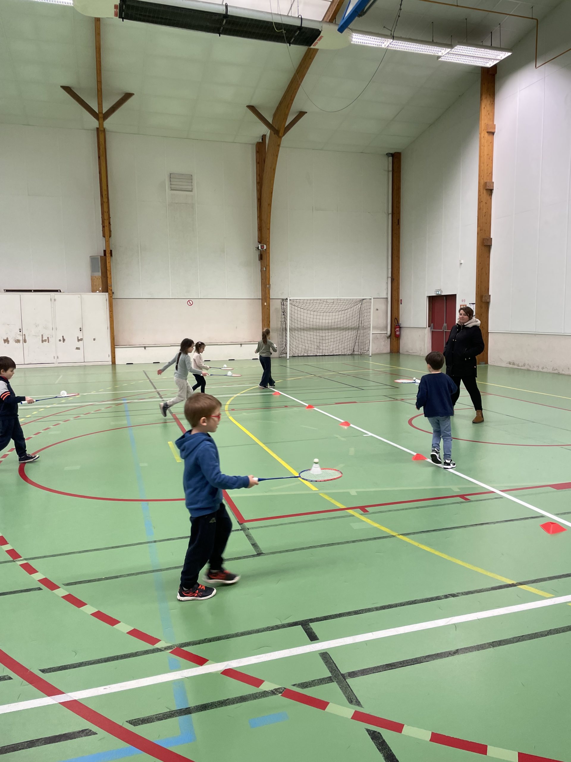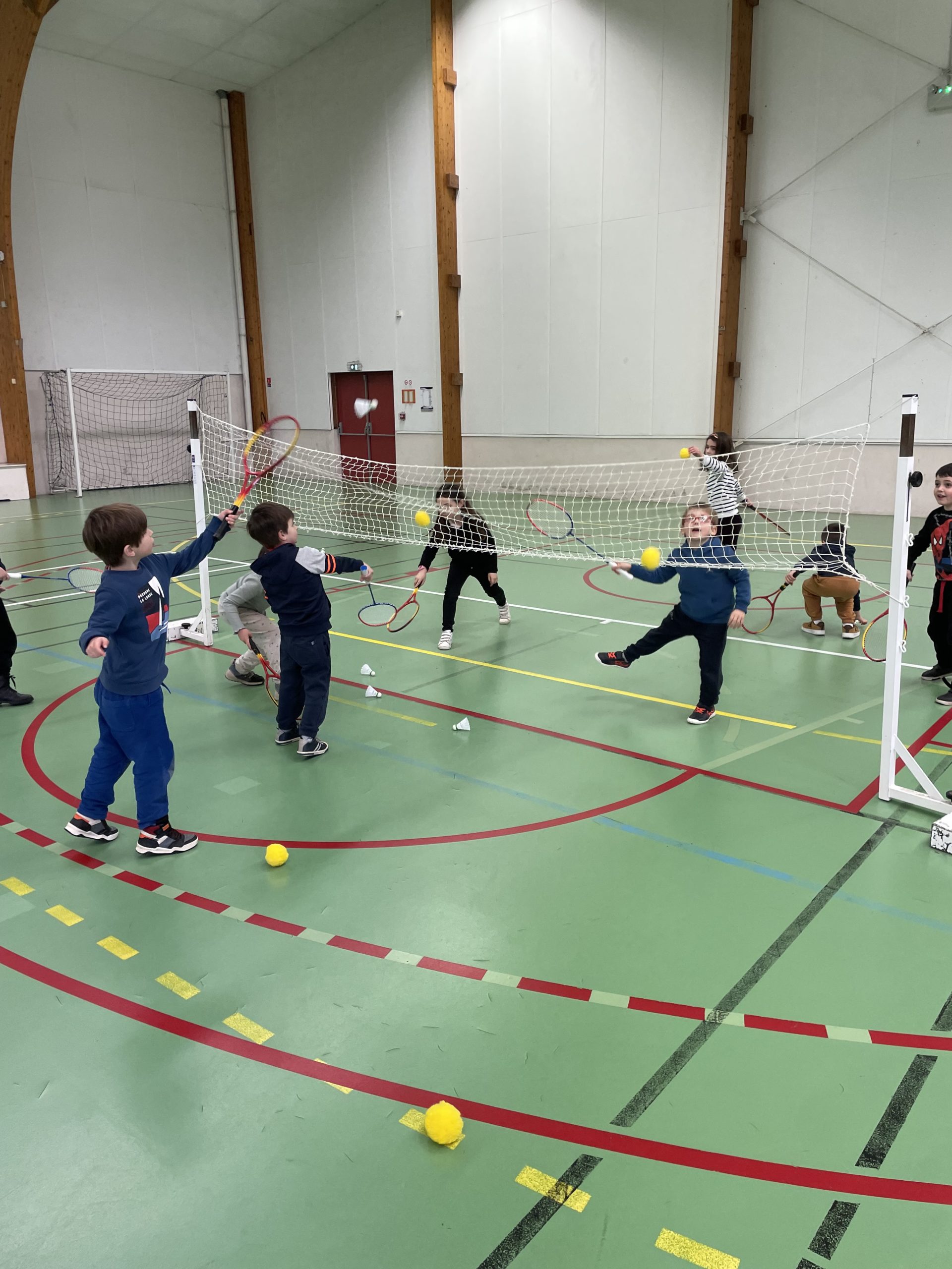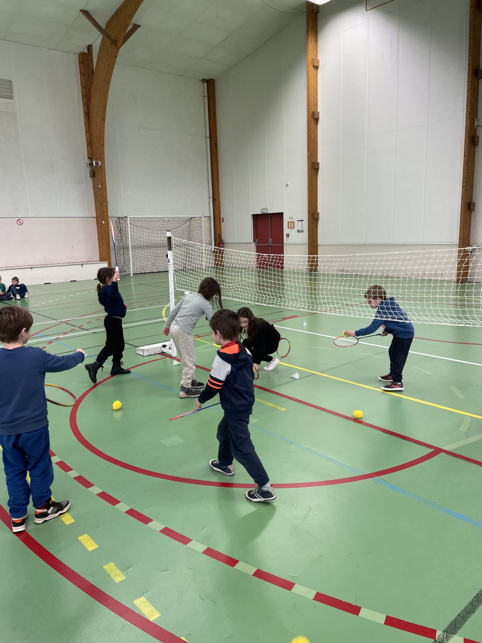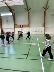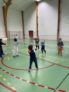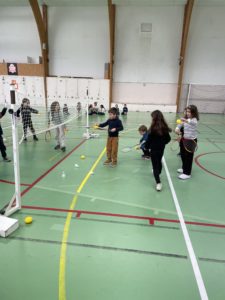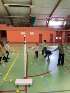 Depuis quelques semaines, tous les lundis après-midi, nous allons à la salle de sport pour nous initier au badminton. Les élèves découvrent comment utiliser et manier la raquette. Ils ont appris à réaliser le service en revers et en coup droit. Et, petit à petit, ils commencent à s’engager dans des échanges.