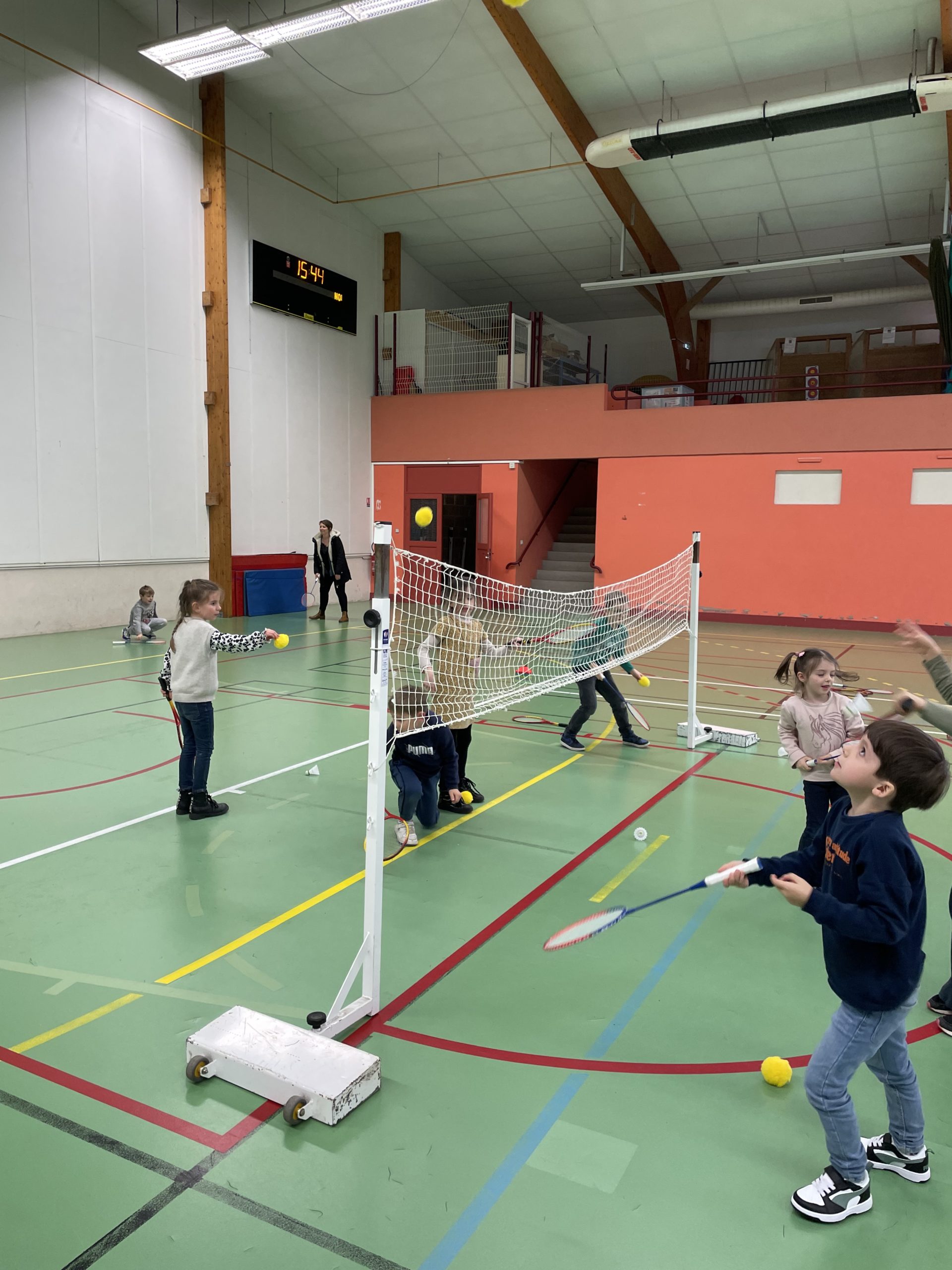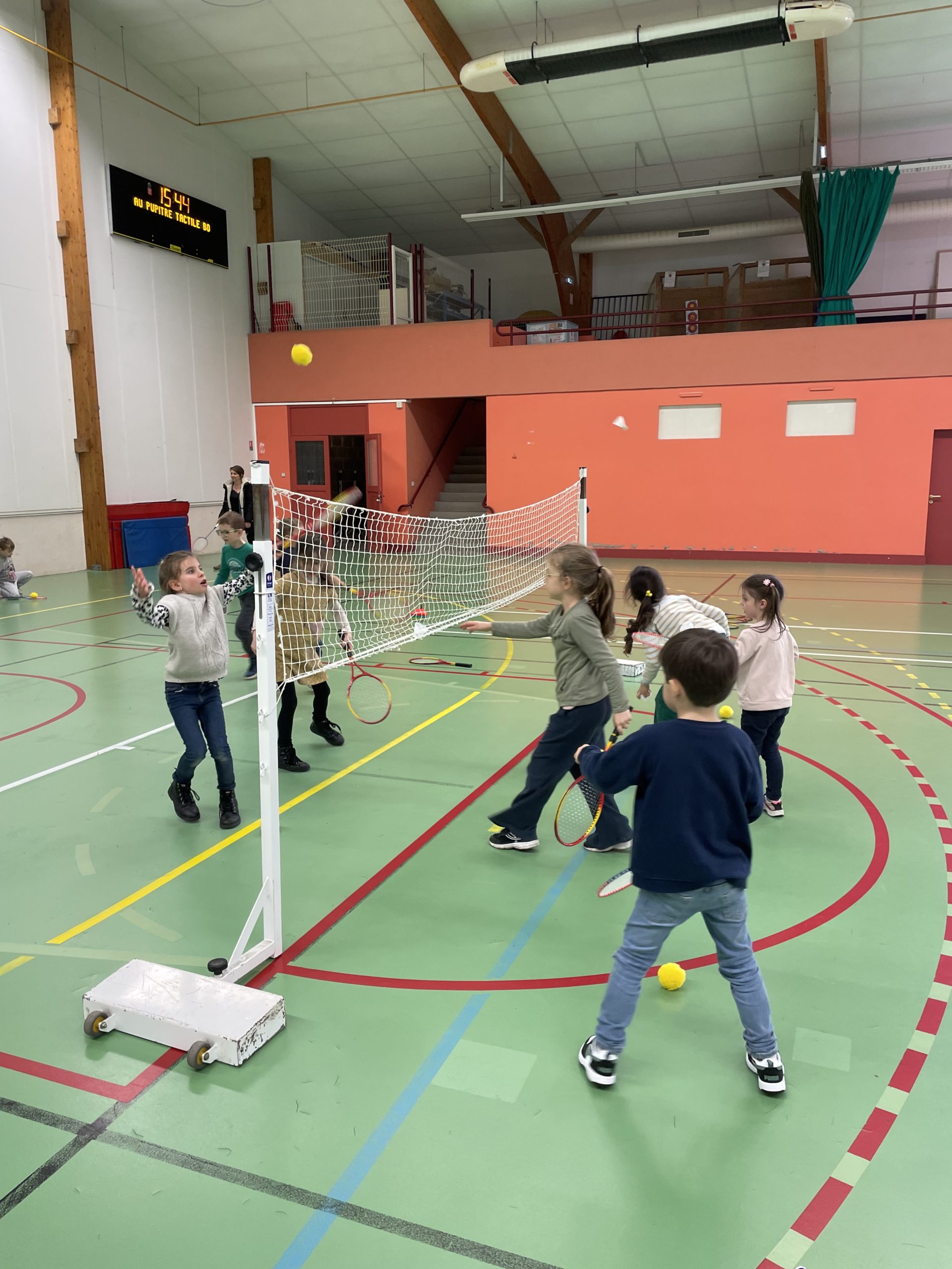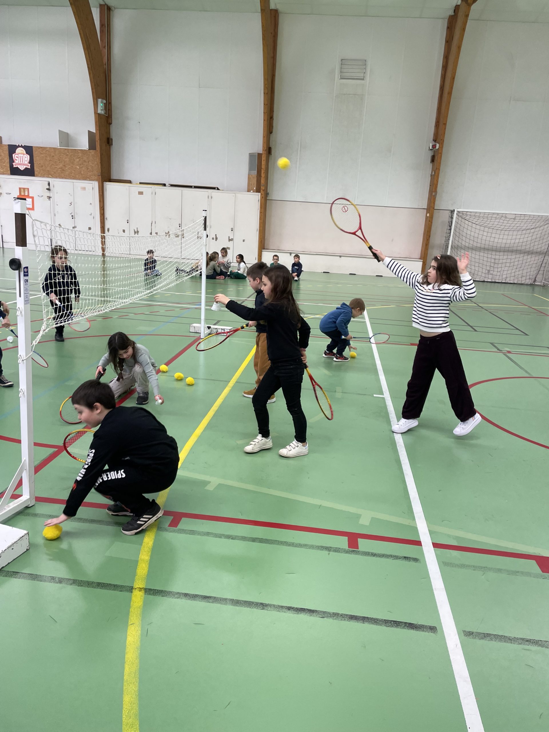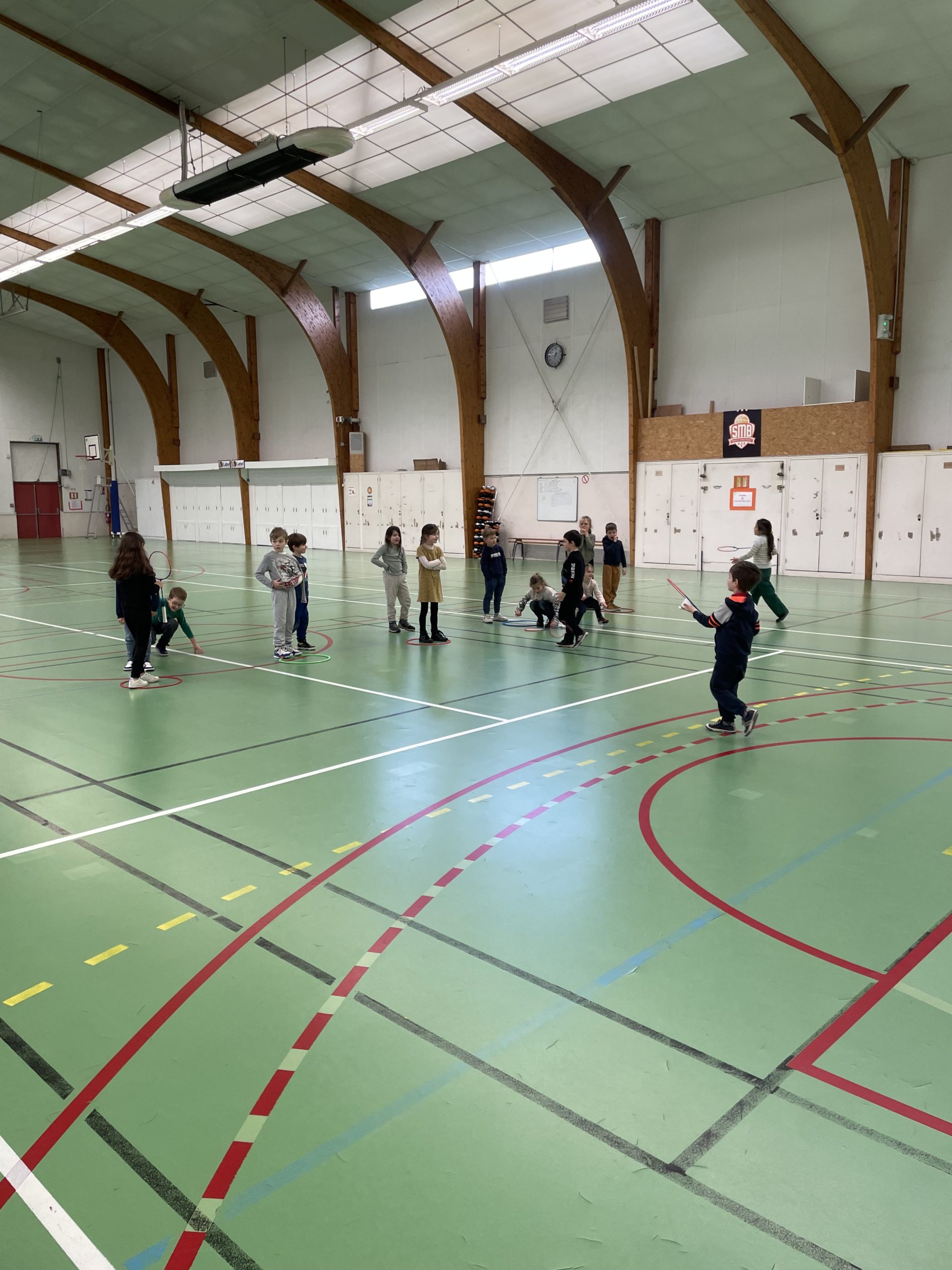 Depuis quelques semaines, tous les lundis après-midi, nous allons à la salle de sport pour nous initier au badminton. Les élèves découvrent comment utiliser et manier la raquette. Ils ont appris à réaliser le service en revers et en coup droit. Et, petit à petit, ils commencent à s’engager dans des échanges.