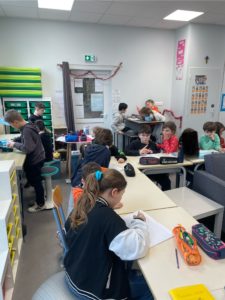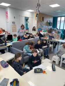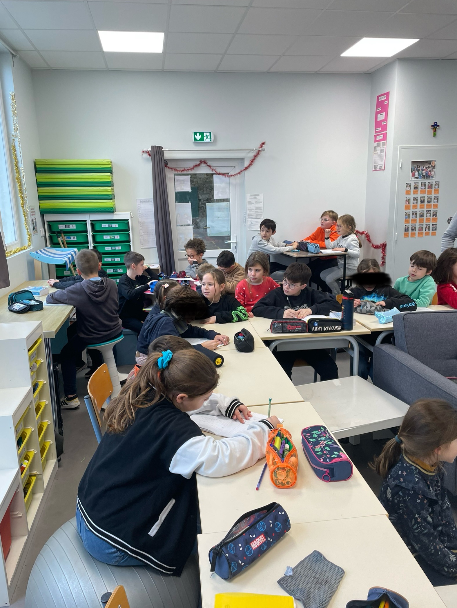 Lors d’une séance d’école du dehors, les élèves de GS/CP accompagnés des élèves de CM1/CM2 ont participé à un projet d’écriture : “Les monstres de la forêt de Maisdon“. En binôme, un grand avec un petit, les élèves ont dû créer un montres et le décrire. Dehors, ils ont créé leur monstre et produit un premier jet d’écriture. En classe, ils ont corrigé leur portrait et présenté leur monstre à leurs camarades.