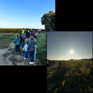 : les élèves ont réalisé des empreintes de feuilles de vignes pour créer une fresque collective, une magnifique trace de cette matinée ensoleillée.